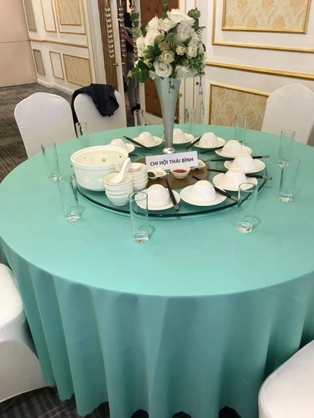 khăn bàn tròn xanh ngọc