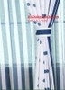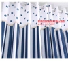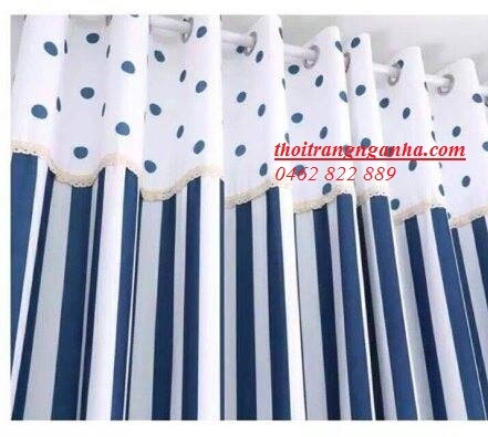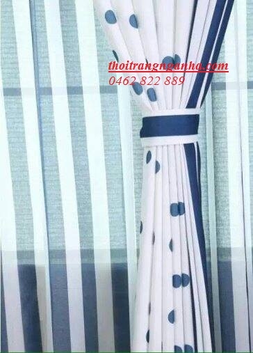 rèm vải 2 lớp xanh dương chấm bi sọc