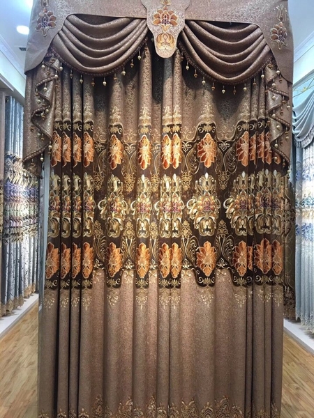 rèm 2 lớp quý tộc nâu hoa